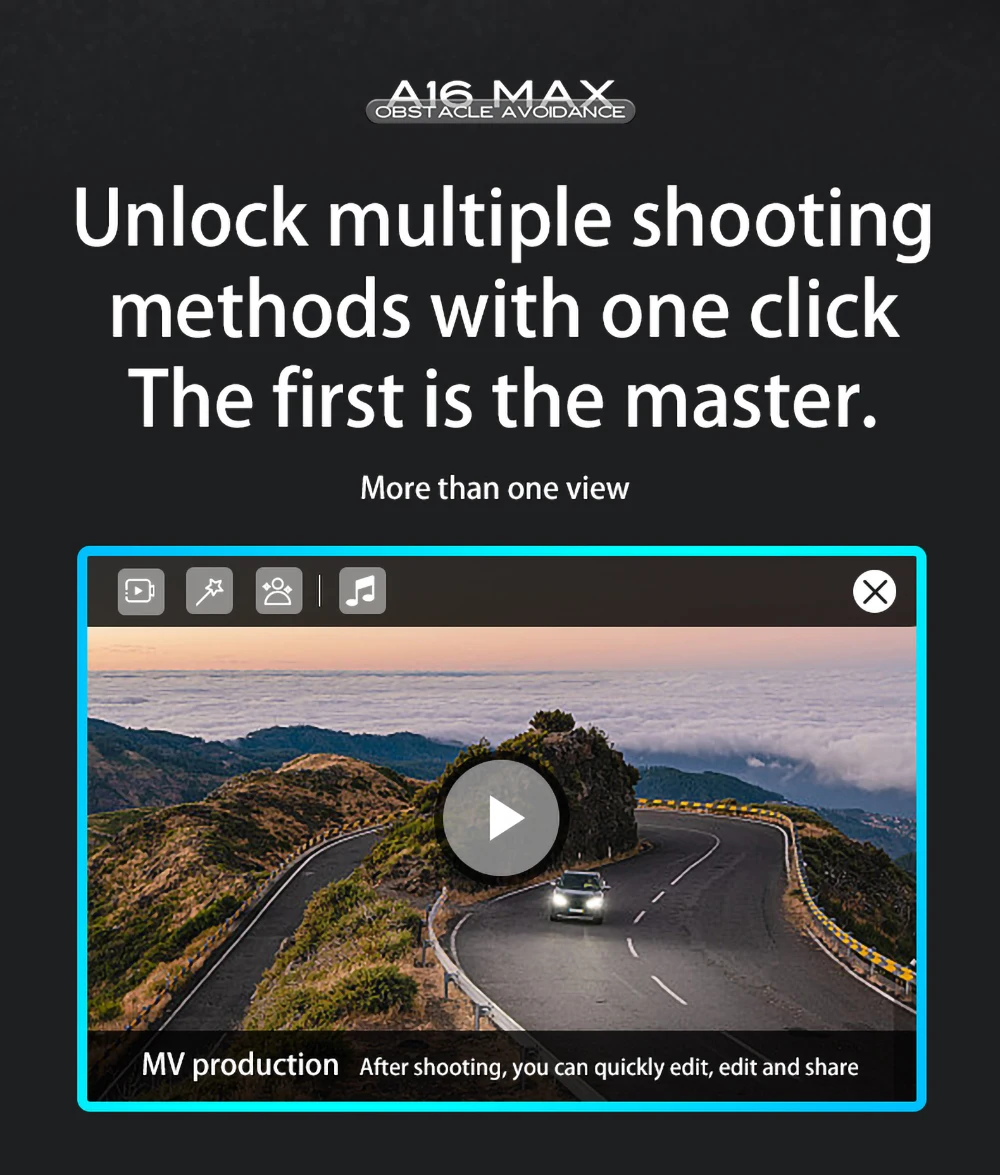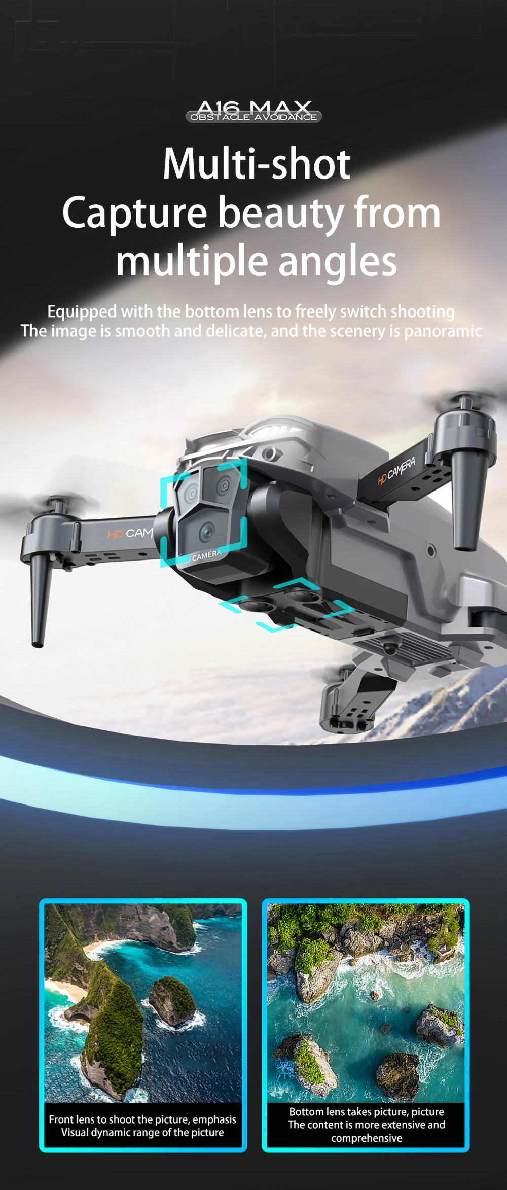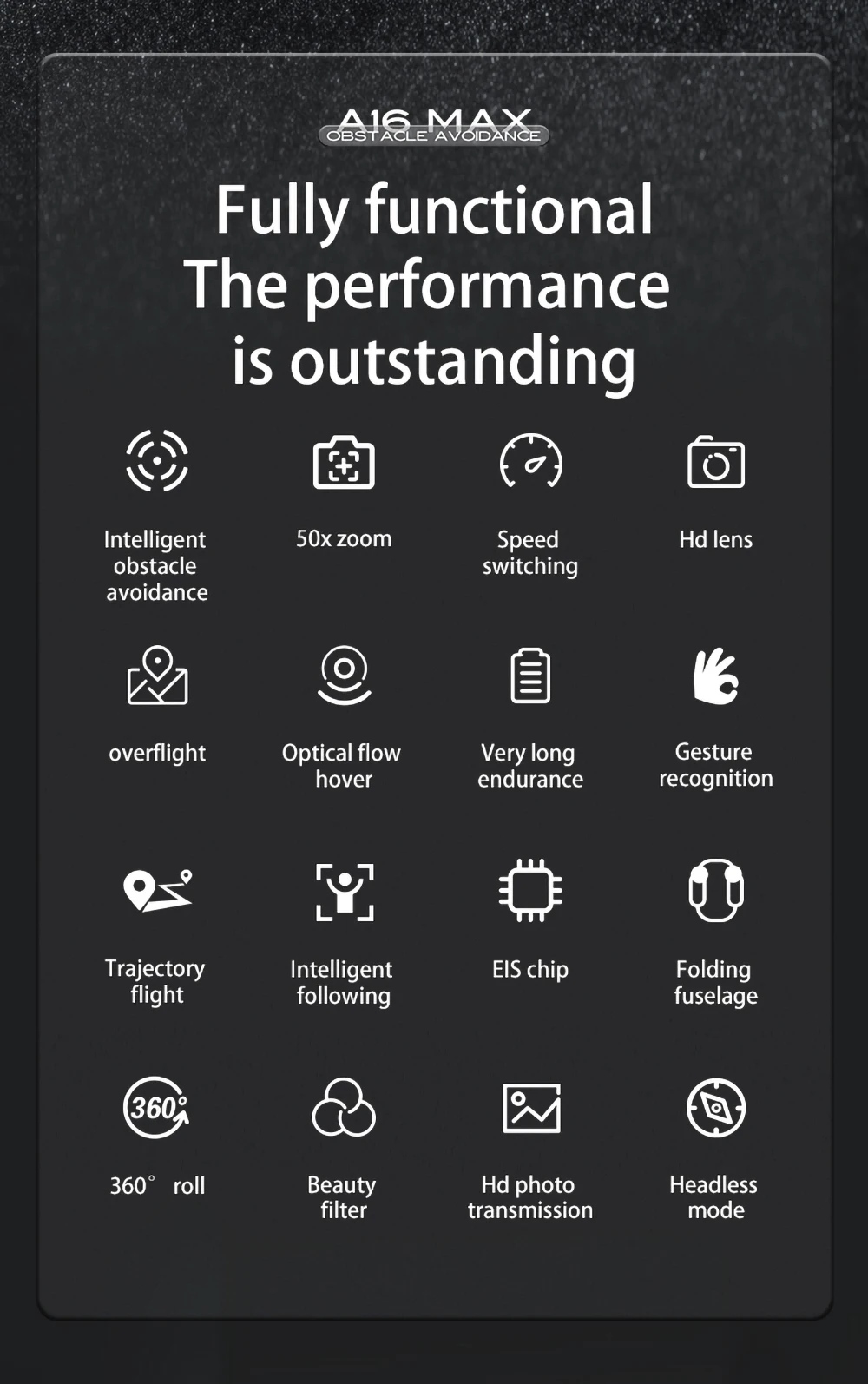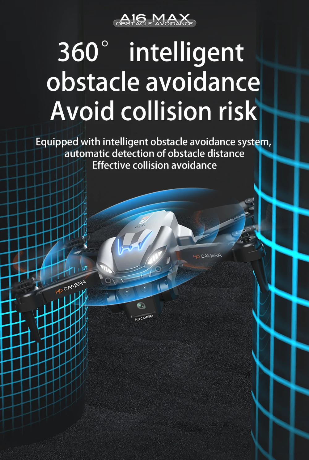 A16 MAX 4K Drone com Câmera, Evitar Obstáculos em 360 °, GPS Smart Flying Drone, Rastreamento Motor Brushless – Cor Cinza – Produto Novo
