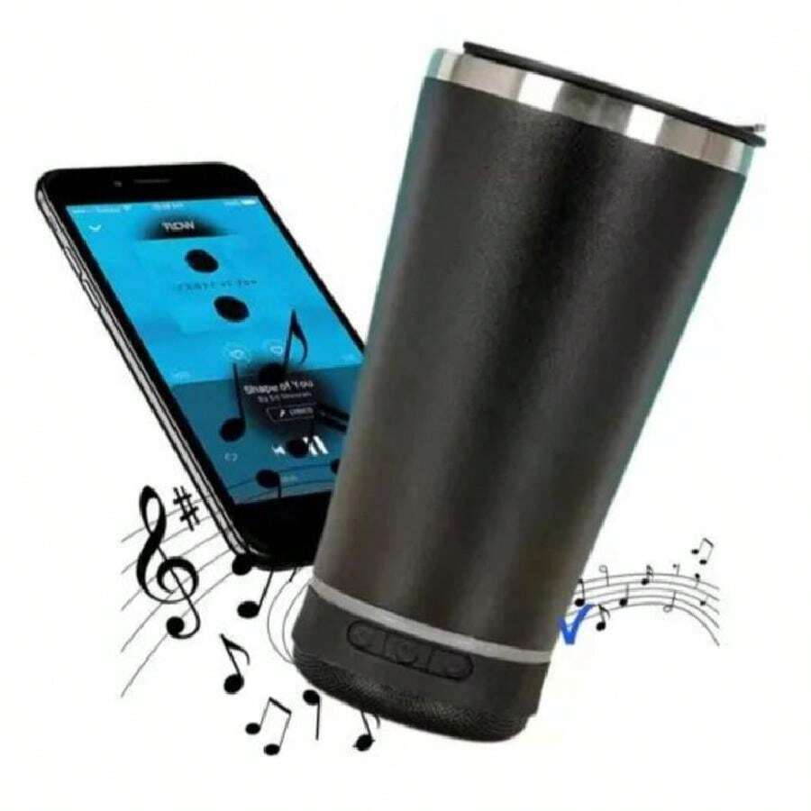 Copo Termico com caixa de som removivel e Led Bluetooth recarregavel inox com tampa colorida abridor 420ml – Cor Preto – Produto Novo