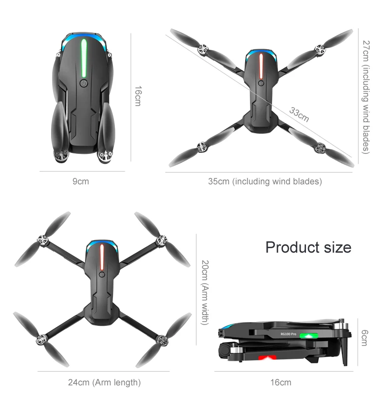 RG100PRO Drone Brushless Motor Inteligente Evitar Obstáculos Câmera Dupla HD Fotografia Aérea Avião Controle Remoto Aeronaves