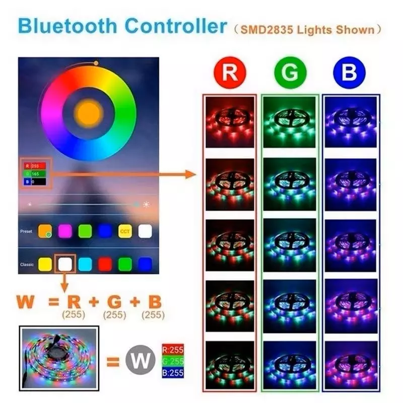 Fita LED RGB 3528 com 5 Metros + Controle Remoto SEM CARREGADOR Produto de fácil instalação e alta durabilidade. Ideal para decoração e iluminação nos mais diversos tipos de ambientes. São 15 cores disponíveis (não inclui branco). Resultado das combinações das cores: R – Vermelho (Red) G – Verde (Green) B – Azul (Blue) – São 5 modalidades de iluminação (5 botões da direita no controle remoto). Cada um representa uma configuracao para piscar as cores disponíveis: W, FLASH, STROBE, FADE, SMOOTH. – Vários pontos para poder cortar e alterar o tamanho da sua Fita – Acompanha Controle Remoto – FIQUE ATENTO AO REALIZAR A COMPRA, POIS NÓS TEMOS A OPÇÕES COM A FONTA E SEM A FONTE!! – Especificações técnicas: Consumo: 4,7 W por metro. Tensão da Fita: 12 Volts Cor da Luz: RGB Luminosidade: 446 Lumens por metro, com variação de 10% Ângulo de iluminação: 120 Índice de proteção: IP20 Vida útil: 40.000 horas Medidas: 0,8cm X 500cm Fonte Não Inclusa Peso: 180 Gramas Itens inclusos: 1 Fita de LED 1 Controle Recomo 1 Controlador