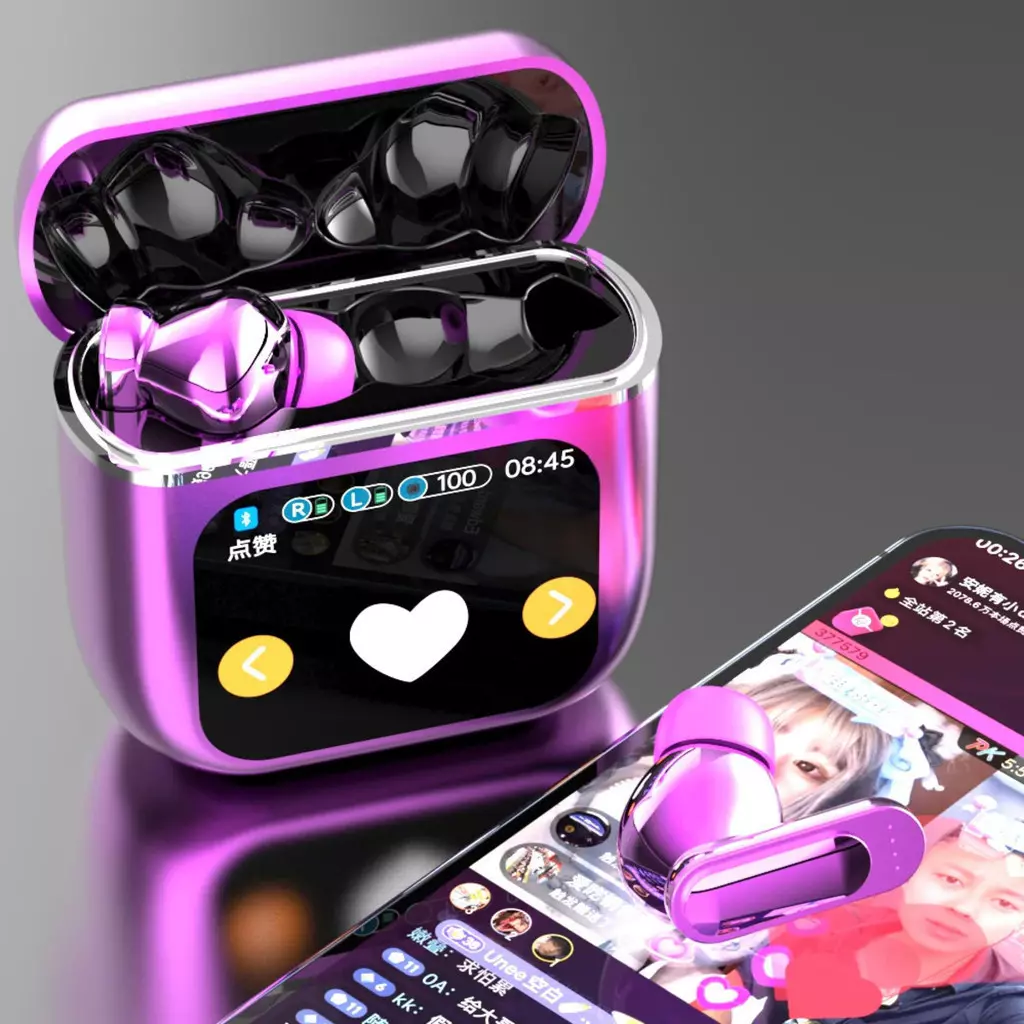 Fones De Ouvido TWS SE60 Sem Fio Bluetooth com Ecrã Táctil LED Visível Cancelamento de Ruído Ativo – Cor Vinho – Produto Novo