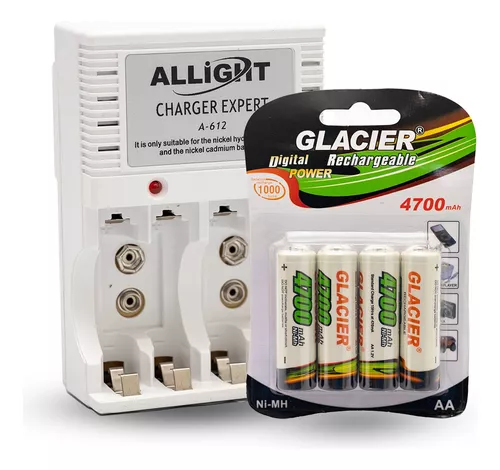 CARREGADOR DE PILHAS A-612 + 4 PILHAS RECARREGÁVEIS AA DE 4700 MAH